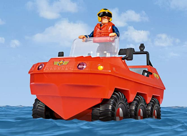 This pack includes a Fireman Sam figure with an Amphibian Hydrus vehicle. Firefighter Sam and his colleagues will have a lot to do in their little town, Pontypandy, with this hydrus vehicle, he can save many people on earth and in water. This Amphibian vehicle has six wheels, is 20 cm long and can also swim on the water. So this toy is perfect for your kids for playing in the bathtub.