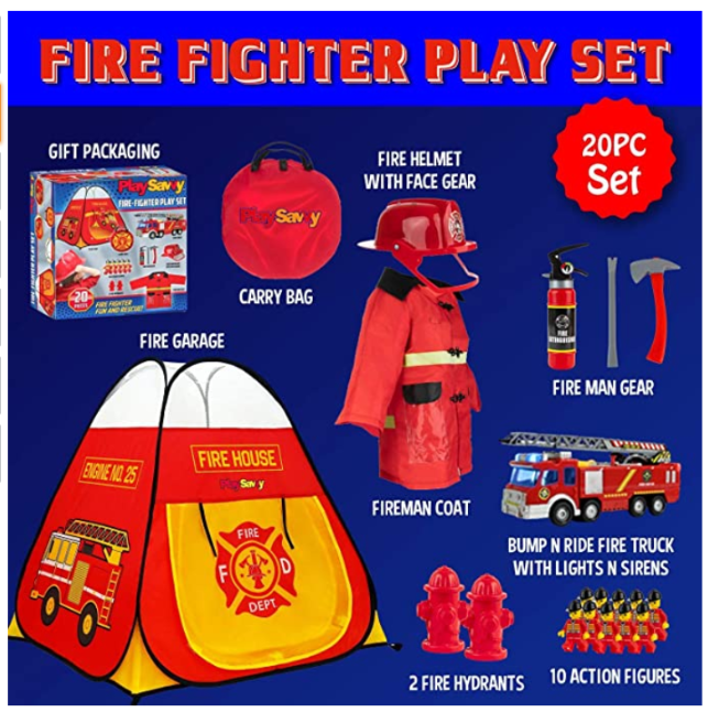 1. PlaySavvy Pop Up Play Tent & Pretend Fireman Costume for Kids, Toddlers, Boys, Girls.